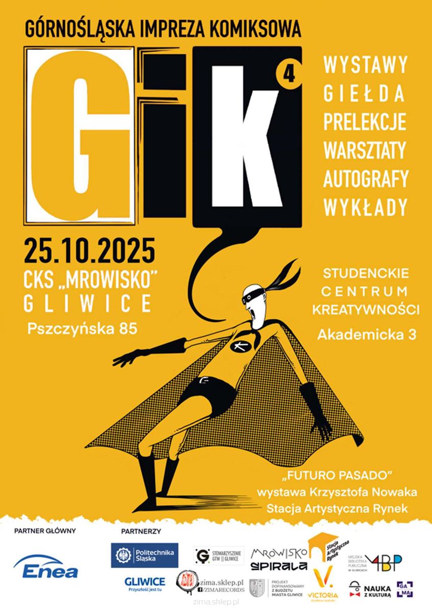 Górnośląska Impreza Komiksowa zaprasza na czwartą edycję największego święta komiksu na Śląsku! Już 25 października 2025 roku w Gliwicach odbędzie się kolejna odsłona festiwalu, który co roku gromadzi miłośników komiksu, ilustracji, popkultury i twórców z całego kraju.